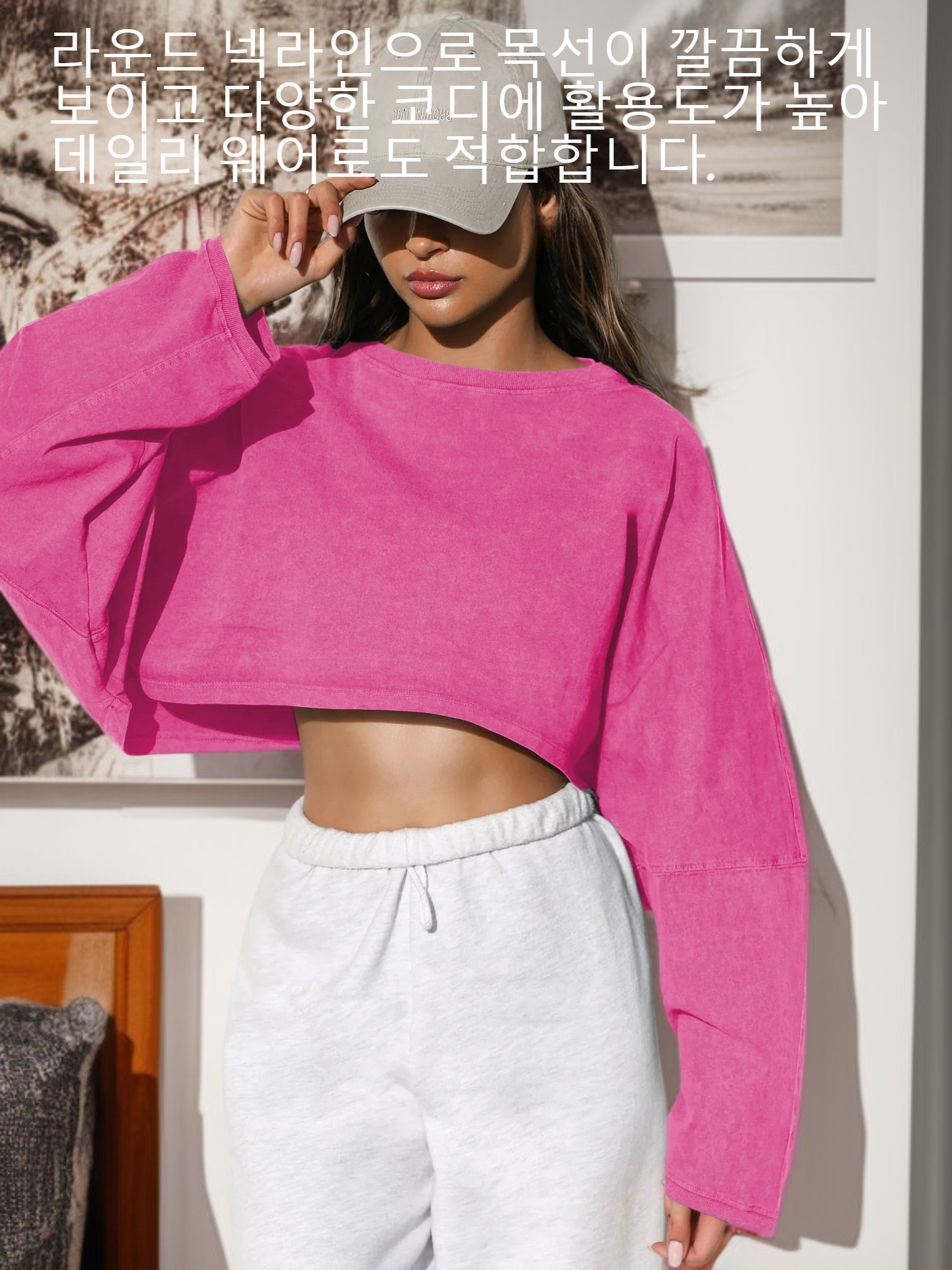 ● 라운드 넥라인으로 목선이 깔끔하게 보이고 다양한 코디에 활용도가 높아 데일리 웨어로도 적합합니다.