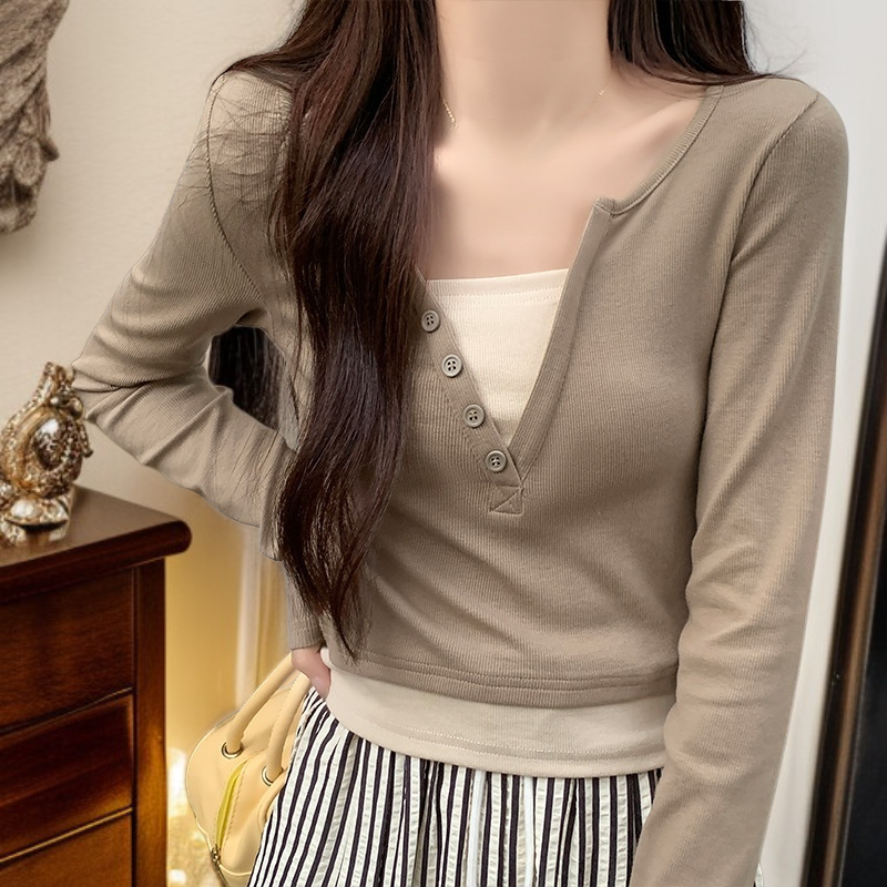 ● 박시한 쇼트 니트 톱과 슬림핏 긴팔 티셔츠가 페이크 투피스 디자인으로 트렌디한 레이어드 스타일을 연출해줍니다. ● 여성스러운 실루엣을 강조하는 슬림핏으로 데일리룩부터 특별한 날까지 다양하게 활용할 수 있습니다. ● 부드러운 소재와 편안한 착용감으로 하루 종일 부담 없이 입을 수 있으며, 시즌 내내 자주 손이 가는 아이템입니다. ● 세련된 컬러와 유니크한 디자인으로 단독 착용은 물론 다양한 하의와 매치하기 좋아 스타일링이 쉽습니다. ● 페이크 투피스 효과로 레이어드한 듯한 멋스러움과 동시에 간편함을 느낄 수 있어 실용성이 뛰어납니다.